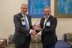 October 19, 2022Col. Cory J. Plowden ’99 (left) and Ret. Col. Warren Bacote ’89 (right) recall fond memories of their college days at Lander University with former Vice President for Student Affairs…