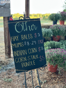 The Patch offers a variety of pumpkins, mums, square straw bales, local honey, Rolling Hill Ranch goat milk products, beeswax products, corn stalks, sunflowers, t-shirts, and lots of family fun!