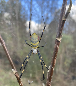 Joro spiders, originally native to East Asia, have steadily spread through Georgia, South Carolina, North Carolina, and Tennessee over the past decade. Their large size and striking yellow-and-gray markings make them hard to miss, and their expansive orb-shaped webs often appear on porches, trees, and fences this time of year.