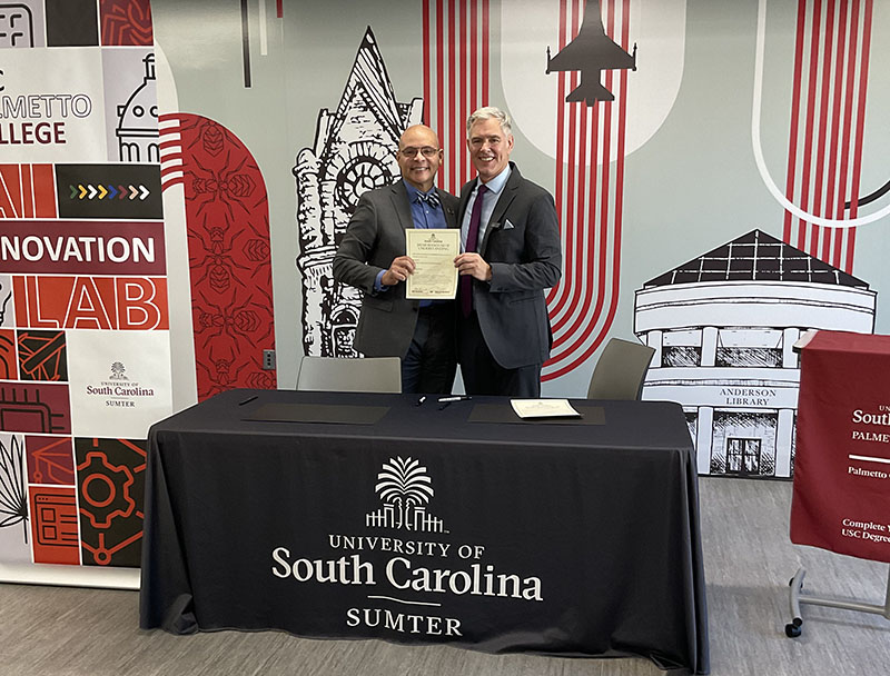 The University of South Carolina Palmetto College and USC’s College of Information and Communications signed an agreement to expand artificial intelligence education and workforce readiness across South Carolina. The signing ceremony took place at the newly rechristened USC Palmetto College AI Innovation Lab at USC Sumter.