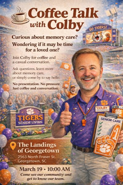 The Landings of Georgetown is hosting a casual coffee talk with its Executive Director Colby Bryant about memory care. No presentation or high pressure sell, just coffee and conversation so…