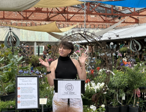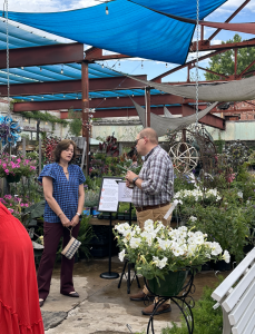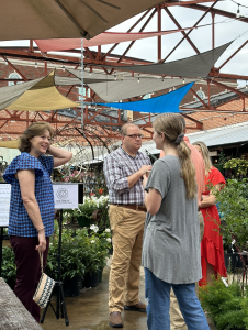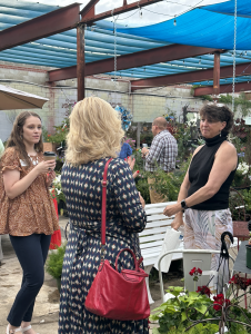 With the open-air nursery as the backdrop for the meeting, local business owners gathered for coffee and conversation. Following the networking, Kim Verdin addressed the group.