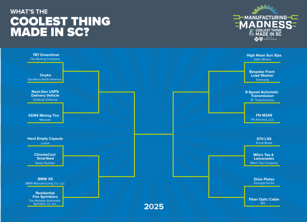 Created by the South Carolina Manufacturers Alliance (SCMA), the Manufacturing Madness competition was launched in 2022 to celebrate the ingenuity, impact, and excellence of manufacturing and the products made in South Carolina.​