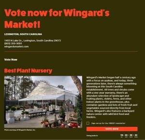 February 19, 2026Popular Midlands gardening center & nursery, Wingard’s Market announced it has been nominated for the USA TODAY 10BEST Readers’ Choice Awards in the category of Best Plant Nursery, a national honor recognizing outstanding garden centers across the country. Currently, Wingard’s is in the #1 position; but they need the public’s vote to stay there!